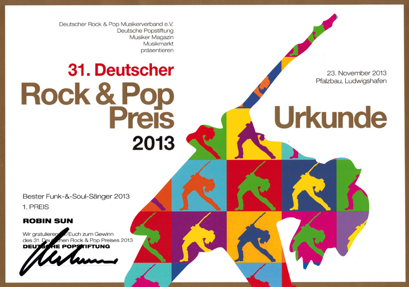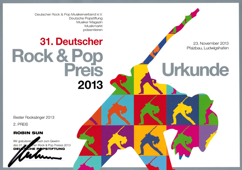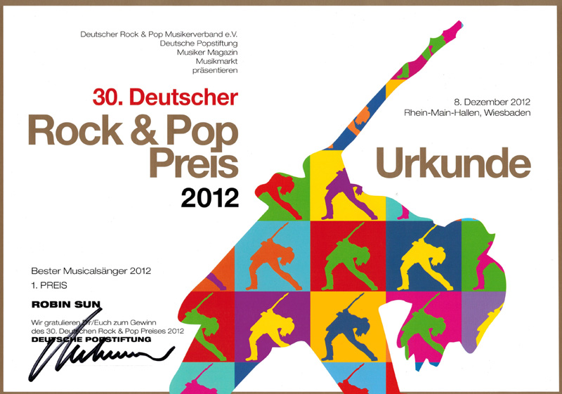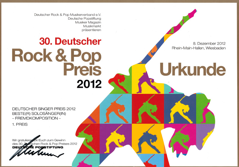 2011 war es soweit. Ich bewarb mich für den deutschen Rock & Pop Preis in der Kategorie Bester Schlagersänger, wurde nominiert und gewann den Titel im ersten Ansatz. 2012 bewarb ich mich dann in 4 Kategorien Bester Latin Pop Sänger, Bester Musicalsänger, Bester Popsänger und bester Sänger Bundesweit. Und was soll ich sagen, wir nahmen alle 4 erste Plätze mit nach Hause. Ganz Besonders habe ich mich über den Oscar der Musicbranche für den ersten Platz als Bester Sänger Bundesweit. Das Jahr darauf 2013 hatte ich mich für 12 kategorien beworben. Es wurden 7 x Gold (Bester Coversänger, Bester Folk Rock Sänger, Bester Funk Soul Sänger, Bester Gospel Sänger, Bester Latin Pop Sänger, Bester Pop Sänger, Bester Schlager Sänger), 3 x Silber (Bester Rocksänger, Bester Musicalsänger, Bester Countrysänger), 2 x Bronce (Bester Song Englisch, Beste Studioaufnahme)